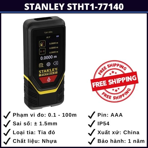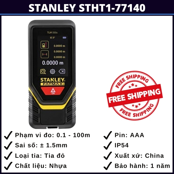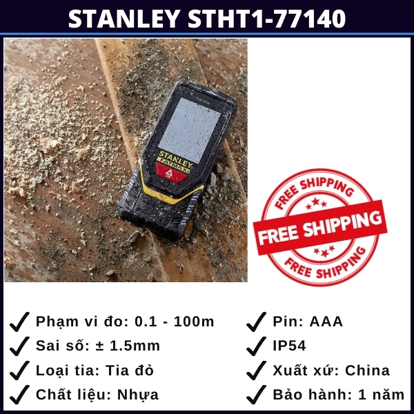 - Độ chính xác tiêu chuẩn: Với công nghệ đo laser tiên tiến, máy đo khoảng cách Stanley STHT1-77140 đảm bảo độ chính xác trong điều kiện làm việc thông thường